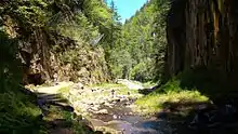 Les murs de porphyre qui gardent la cascade.