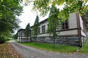 Le poste de garde principal en bois au milieu de la zone, la boulangerie en brique et les bâtiments de l'atelier le long de Selkäsuonkatu sont également à leur place d'origine.