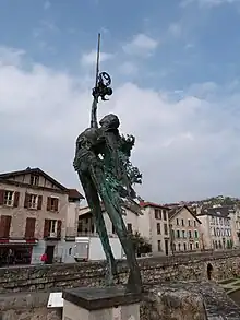 Église Saint-Jean de Castelsarrasin avec la sculpture Le Pélerin