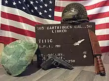 Le casque M1 fut utilisé par les fantassins d'infanterie pendant la Seconde Guerre mondiale seulement, il est reconnaissable car il ne possède qu'une sangle jugulaire en tissu ainsi qu'une autre en cuir.