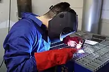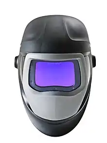 Les lunettes de soudage sont des lunettes de protection dotées de verres teintés, destinées à protéger les yeux de la lumière vive produite par le soudage oxyacétylénique et les processus connexes, ainsi que des étincelles et des débris[6]. Les arcs électriques ouverts (créés par d'autres procédés tels que le TIG ou l'arc-enrobé) génèrent des quantités beaucoup plus élevées de lumière et de rayonnement UV, nécessitant la protection de l'ensemble du visage ; de plus, la plupart des lunettes de soudage n'ont pas une teinte suffisamment foncée pour le soudage à l'arc.