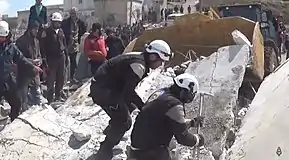 Mais ils sont accusés par le régime syrien et la Russie de liens avec la rébellion[6],[39] et sont ciblés délibérément par des frappes aériennes loyalistes syriennes et russes[40],[4],[41],[1],[42],[38],[43]. Le à Alep, trois des quatre centres de la Défense civile syrienne sont bombardés par les loyalistes ou les Russes et deux des centres sont mis hors de service, forçant les Casques blancs à « limiter leurs interventions, alors même que les besoins explosent »[4]. De 2013 à mars 2019, plus de 260 Casques blancs sont tués en Syrie et environ 500 sont blessés[41]. Ces attaques s'expliquent par la diffusion sur les réseaux sociaux d'images filmées par les Casques blancs lors de leurs opérations de sauvetages[44].