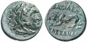 Monnaie de Cassandre à l'effigie d'Héraclès (British Museum). | |
