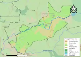 L'occupation des sols de la commune, telle qu'elle ressort de la base de données européenne d’occupation biophysique des sols Corine Land Cover (CLC), est marquée par l'importance des territoires agricoles (99,5 % en 2018), en augmentation par rapport à 1990 (75,4 %). La répartition détaillée en 2018 est la suivante : prairies (73 %), zones agricoles hétérogènes (26,5 %), milieux à végétation arbustive et/ou herbacée (0,5 %)[33].
