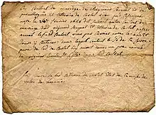 Le 9 juin 1632, François de Rouanne, époux de Gabrielle de Carlat, sœur de Jean, rédige lui aussi une quittance dotale pour son beau-père[29]. Cette quittance est écrite dans la maison de Bertrand de Masnau, le beau-père de Jean de Carlat. François de Rouanne reçoit la somme de la dot de son beau-père, Gabriel de Carlat, et de son beau-frère, Jean de Carlat. Cette somme s’élève à 2 500 livres, payées par le Sieur de la Serre, Jean de Carlat, en ducats et autres monnaies d’or.