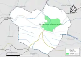 L’inventaire des zones naturelles d'intérêt écologique, faunistique et floristique (ZNIEFF) a pour objectif de réaliser une couverture des zones les plus intéressantes sur le plan écologique, essentiellement dans la perspective d’améliorer la connaissance du patrimoine naturel national et de fournir aux différents décideurs un outil d’aide à la prise en compte de l’environnement dans l’aménagement du territoire. Une ZNIEFF de type 1[Note 2] est recensée sur la commune[17] : les « bois et prairies de la Garenne de Launard » (99 ha)[18] et une ZNIEFF de type 2[Note 3],[17] : l'« ensemble de bois et bosquets de Castelnau-Picampeau » (469 ha), couvrant 3 communes du département[19].