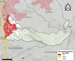 Les mouvements de terrains susceptibles de se produire sur la commune sont soit des chutes de blocs, soit des glissements de terrains, soit des mouvements liés au retrait-gonflement des argiles. Près de 50 % de la superficie du département est concernée par l'aléa retrait-gonflement des argiles, dont la commune de Castillon-en-Couserans[36]. L'inventaire national des cavités souterraines permet par ailleurs de localiser celles situées sur la commune[37].