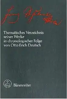 - (en) Otto Erich Deutsch, The Schubert Thematic Catalogue, Dover, 1995, 565 pages. (ISBN 0-486-28685-1)