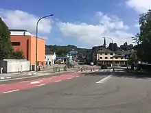 La N4 a été modifiée à l'entrée nord du village, en haut de la côte, en élargissant un virage. On ne passe donc plus devant le monument du sanglier mais bien derrière.