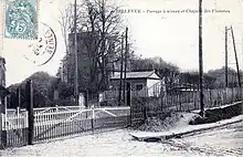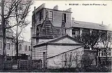 Pour exprimer sa douleur et célébrer la mémoire des victimes, l'architecte François-Marie Lemarié[50], qui a perdu un fils, une belle-sœur et un cousin dans la catastrophe[51], achète un terrain à proximité immédiate du lieu de la catastrophe[52] (sur l'actuelle rue Henri-Savignac), et y fait édifier en quelques mois une chapelle commémorative, dite Notre-Dame-des-Flammes[53], inaugurée le par l'évêque de Versailles[54]. Cette petite construction blanche en pierre de taille de plan triangulaire et de style néogothique sera inscrite à l'inventaire supplémentaire des monuments historiques en 1938, mais rayée de la liste en 1959 et démolie peu après[53]. Son décor était composé de reliefs figurant des ossements livrés aux flammes. Au-dessus de l'autel se trouvaient la statue de la Vierge ainsi qu'un vitrail figurant la Trinité dans son registre supérieur et une représentation de la catastrophe dans sa partie inférieure[55].