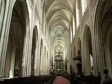 - hauteur sous voûte de la nef : 28 mètres (contre 33,5 mètres pour Notre-Dame de Paris, 36 pour le chœur de Notre-Dame de Tournai et 42,3 pour Notre-Dame d'Amiens)
