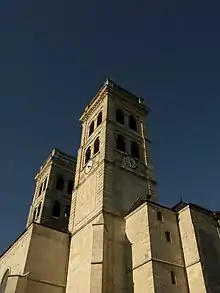 La cathédrale possède deux clochers. Elle est accolée à l'ancien palais épiscopal de la ville, accueillant aujourd'hui le centre mondial de la paix.