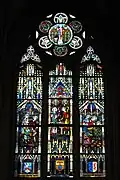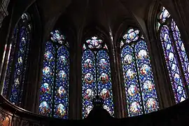 Les vitraux et verrières de la cathédrale sont réalisés par le maître-verrier nancéien Jean-Jacques Grüber, pour remplacer ceux pulvérisés par les bombardements allemands de la Première Guerre mondiale[5]. Un vitrail situé dans le transept occidental et réalisé de 1927 à 1934, illustre la consécration de la cathédrale par le pape Eugène III le [7],[22].