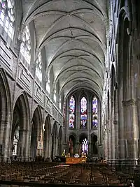Le chœur possède une abside à cinq pans des XVIe et XVIIe siècles. Encadrant le chœur, le déambulatoire a été ajouté fin XVIIe siècle, et les chapelles rayonnantes datent du XIXe siècle. Les piliers torsadés sont un pastiche du style Louis XII, exemple de l’imitation des styles du passé sous le Second Empire. Dans les fenêtres hautes se trouvent des vitraux du XIXe dus à Lobin.