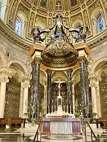 Sa conception s'inspire de la Renaissance française. Le dôme mesure 57 mètres de hauteur et 23 mètres de diamètre. Le revêtement à la feuille d'or a été ajouté dans les années 1950. Les murs extérieurs sont en granite de Rockville, ceux de l'intérieur sont recouverts de travertin de Mankato. Les colonnes de l'intérieur sont faites de différents marbres et les vingt-quatre vitraux représentent des chœurs angéliques. La rosace du transept est l'œuvre de Charles Connick. L'électricité a été installée en 1940.