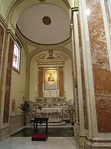 L'abside a une forme rectangulaire et conserve deux œuvres baroques. Adossé à la paroi du fond se trouve le maître-autel datant du XVIIIe siècle, commandé par l'évêque d'Isernia, Michelangelo de Peruta. L'autel est surmonté par la Consegna delle Chiavi a San Pietro (« Remise des Clefs à saint Pierre »), de Raffaele Gioia.