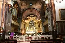 L'église est composée par une grande nef unique de cinq travées voûtées en berceau brisé reposant sur des arcs doubleaux et épaulées par de larges contreforts saillants entre lesquels ont été édifiées les chapelles latérales.
