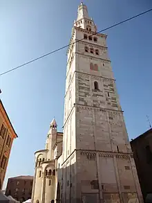 En 1099, lorsque le peuple de Modène prend la décision de cette construction, le siège épiscopal de la ville est vacant, et l’on peut se demander si cette décision, fondée sur l’état de délabrement de la cathédrale existante, ne serait pas aussi un acte politique d’allégeance de la ville envers le souverain pontife. Lorsque Dodone, le nouvel évêque nommé par le pape pris effectivement son poste à Modène en 1101, les travaux étaient déjà bien engagés[1].