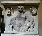 À côté du groupe de la Madone, se trouve une pierre tombale d’une femme de la noblesse morte en 570 qui provient probablement de l’église de Saint-Géminien de cette époque.