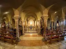 Le maître-autel est composé de six couples de colonnes de marbre, plus une au centre qui est spiralée ; elles représentent les apôtres autour du Christ.