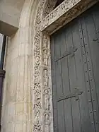 La longue galerie qui conduit à la tribune est supportée par une file de colonnes dont quatre reposent sur des lions stylophores, certains tenant des proies entre leurs pattes : un bouc pour l’un, un chevalier pour l’autre. Les colonnes sont ornées de chapiteaux sculptés soit d’éléments feuillus, soit de scènes bibliques telles que : Daniel dans la fosse aux lions ; le martyre de saint Laurent ; les trois jeunes dans la fournaise, on aperçoit Nabuchodonosor ; le sacrifice d’Abraham. Sur l’autre file, la galerie repose sur quatre consoles sculptées, représentant : la lutte de Samson et du lion ; un lion dévorant un pécheur ; une cariatide tête en bas ; un télamon.