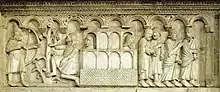 - Jésus devant Pilate. Un peu plus à droite, la scène de la flagellation.