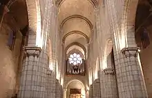 La nef est étroite et voûtée en berceau. Les deux bas-côtés ont une voûte plus basse. Elle est soutenue par des arcs-boutants qui sont parmi les premiers édifiés au Portugal. Plusieurs chapelles existent.