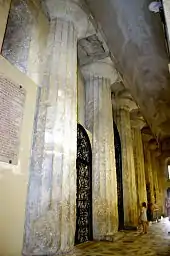 Éléments du temple d'Athéna : colonnes, triglyphes, architrave.