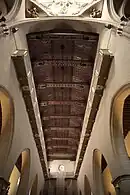 Il mesure 32 mètres de long et date du XIVe siècle. La décoration des caissons comporte des thèmes historiques, religieux, et de peinture des mœurs : fonctionnaires, artisans, personnages historiques, créatures fantastiques. Toute une galerie de types humains, une grande variété picturale, ensemble qui a été maintenu en parfait état, car il a été couvert - et protégé - par un faux-plafond néoclassique au XVIIIe siècle.