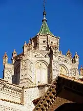 La tour mudéjar est construite en 1257. Un passage a été ouvert pour les piétons dans la partie inférieure, avec voûte en berceau. C'est l'une des plus anciennes tours mauresques d'Espagne. De plan carré, elle est abondamment décorée de carreaux et céramiques vernissées . Elle a été surmontée d'une lanterne octogonale au XVIIe siècle.