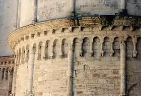 Le chevet roman du XIIIe siècle ne le cède en rien à la façade occidentale. Il possède une abside semi-circulaire rythmée par de fines colonnes engagées, dont certaines sont ornées de torsades.