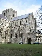 La cathédrale de la Sainte Trinité, Saint Pierre, Saint Paul et Saint Swithun[1] communément connue sous le nom de cathédrale de Winchester, est la cathédrale de la ville de Winchester (Royaume-Uni) dans le Hampshire (comté), une cathédrale anglaise de style roman normand parmi les plus grandes du genre dans l'Europe du Nord. Elle est le siège de l'évêque de Winchester et l'église mère de l'ancien diocèse de Winchester. Construite après la conquête normande de l'Angleterre, elle a subi de nombreuses modifications en style gothique primitif, gothique décoré et gothique perpendiculaire. Important centre d'enluminures, son scriptorium a produit la Bible de Winchester. La cathédrale est dirigée par un chapitre sous l'autorité du doyen de Winchester.