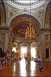 Les travaux de finition et de peinture intérieure ont duré vingt-et-un ans. Les fresques sont peintes par des maîtres de l'école de peinture d'Arzamas d'Alexandre Stoupine, comme Ossip Semionovitch Serebriakov et son fils Alexandre. Les iconostases sont l'œuvre des frères Vassili et Klim Lomakine. Les cinq iconostases sont décorées de solides colonnes de bois avec chapiteaux, de pilastres ornés de filets finement sculptés. Les portes royales de l'autel principal sont parées des icônes du Sauveur et de la Vierge, représentés assis sur des trônes en vêtements blancs et couronnés. Elles sont du pinceau de Nikolaï Alexeïev (gendre de Stoupine) qui peignit plus tard le décor de la cathédrale Saint-Isaac de Saint-Pétersbourg.
