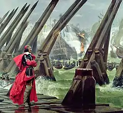 Alors que les troupes du duc d'Anjou encerclent La Rochelle, elle y fait jouer sa tragédie Holopherne[25], dont il ne reste rien, afin de galvaniser, semble-t-il, le moral des femmes, dont certaines participent aux combats[26].