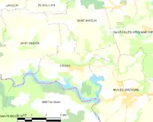 La commune était limitée au sud par le Blavet (désormais par le lac de Guerlédan), à l'est par le ruisseau du Guer, affluent de rive gauche du Blavet, qui se jette désormais dans le lac de Guerlédan et forme la limite communale avec l'ancienne commune de Mûr-de-Bretagne (désormais Guerlédan); à l'extrême-nord le ruisseau de Kermabbihan, affluent du Daoulas, est aussi un sous-affluent du Blavet et forme un temps la limite communale avec Saint-Mayeux.