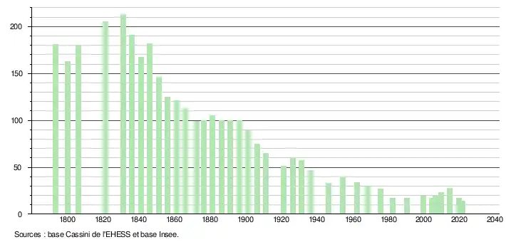 | Rang de la commune dans le département | 568 | 570 | 579 | 578 | 575 | 580 | 579 | 578 |