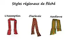 - Le Fléché, Leçons d'artisanat: site de techniques de tissage aux doigts des motifs anciens (Assomption, Flammes nettes, Acadienne et autres)