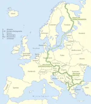 Il consiste à créer une sorte de méga-corridor biologique long de près de 13 000 km, constituant une des ossature du futur réseau écologique paneuropéen. Ce corridor connecterait biologiquement l’Arctique (via la Mer de Barents) à la mer Noire et à la Méditerranée, en passant par 23 pays[8].