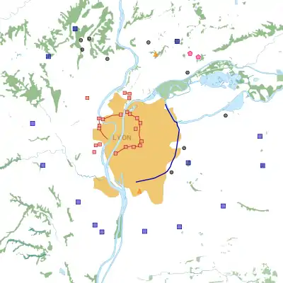 - Enceinte de Caluire (45° 47′ 30,47″ N, 4° 50′ 31,83″ E) (détruite, actuellement rues Albert-Thomas et place professeur-Calmette)