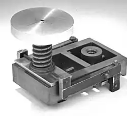 - en suivant une raie de fluorescence d'un étalon[7]. Le rubis, premier exemple pour lequel la pression a été étalonnée, reste le plus employé, mais d'autres choix sont possibles. Cette méthode est relativement légère à mettre en œuvre ; elle nécessite l'emploi d'un laser excitateur et d'un spectromètre permettant d'analyser la lumière émise par fluorescence ;