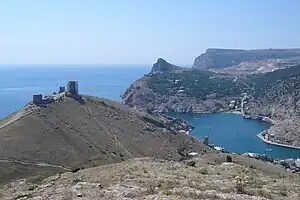- (ru) Cet article est partiellement ou en totalité issu de l’article de Wikipédia en russe intitulé « Чембало (крепость) » (voir la liste des auteurs).