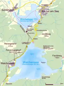 La centrale hydroélectrique de Walchensee exploite l'énergie hydraulique d’une chute d'eau naturelle de 200 m entre la retenue du lac Walchen (801 m au-dessus du niveau de la mer) et le lac de Kochel (600 m au-dessus du niveau de la mer). Le marnage du lac de Walchen autorisé à l'exploitant est de 6 m, ce qui correspond à un volume d'eau de 110 000 000 m3. C'est une centrale hydroélectrique bien différente des centrales de pompage-turbinage, puisque l'eau est définitivement soustraite du réservoir du lac de Walchen. Construite pour assurer à l'origine l'alimentation de toutes les communes de la vallée, elle n'assure plus aujourd'hui qu'un appoint lors des pointes de consommation.
