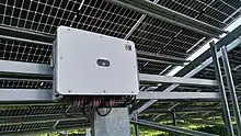 Des stratégies différentes ont été opérées par les deux constructeurs s'agissant du choix des Onduleurs solaires. Enerparc a opté pour des onduleurs centralisés du fournisseur allemand SMA. Ceux-ci permettent de collecter un grand nombre de panneaux solaires en un équipement de plusieurs Megawatt. TSE a choisi des onduleurs de chaine du chinois Huawei, on en dénombre 356 installés[5].