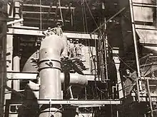 Terminor construit un village adjacent à la centrale pour héberger les ingénieurs et techniciens américains qui ont participé aux travaux de construction et un petit barrage sur le Carrión, le barrage Villalba, afin de garantir une quantité suffisante d'eau de refroidissement. Les travaux ont été compliqués par des contraintes de transport. Le déplacement de la turbine General Electric à partir du port de Bilbao a requis quelques camions aux dimensions énormes qui ont eu de la difficulté à emprunter les routes sinueuses de l'époque. Après plusieurs années de travail, le premier groupe, d'une puissance de 148 MW, est mis en service en juin 1964. Il est exploité par Terminor[2].