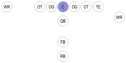 Le centre est situé, comme son nom l'indique, au centre de la ligne offensive (offensive line, abrégé en O-line), juste devant le quarterback (QB).