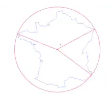 Pour un ensemble fermé borné du plan, il existe un unique cercle de rayon minimal englobant l'ensemble. Son centre est le point pour lequel la plus grande distance à un point de l'ensemble est la plus petite possible. Ce cercle minimum est en général dénommé cercle circonscrit, sauf dans le cas d'un triangle obtus où le cercle minimum est le cercle de diamètre le plus grand côté.
