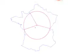 - le centre du cercle inscrit, répondant au problème du plus grand cercle vide pour la courbe réunion des trois côtés