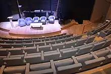 La salle de l'amphithéâtre dans le bâtiment sur l'avenue Rapp, conçue pour 209 personnes, accueille des concerts musicaux et performances artistiques, spectacles de théâtre, projections de film, rencontres avec des personnalités culturelles, conférences et colloques, présentations et d'autres activités[16],[17].