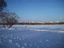 Le lac Wascana en hiver depuis sa rive sud, près du bâtiment législatif