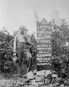 - « Le concept de centre démographique utilisé par le Bureau de recensement des États-Unis est celui du point d'équilibre. Le centre démographique est le point auquel une représentation de surface imaginaire, sans poids, rigide et plane (sans effet d’altitude) des 50 États (ou 48 États contigus pour les calculs effectués avant 1960) et le District de Columbia s’équilibrerait si des poids de taille identique étaient placés sur celui-ci de sorte que chaque poids représente l'emplacement d'une personne. Plus spécifiquement, ce calcul est appelé le centre démographique (the mean center of population)[2] »